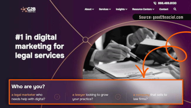 Good2bSocial uses their hero to ask who the visitor is and adapts the journey from there.