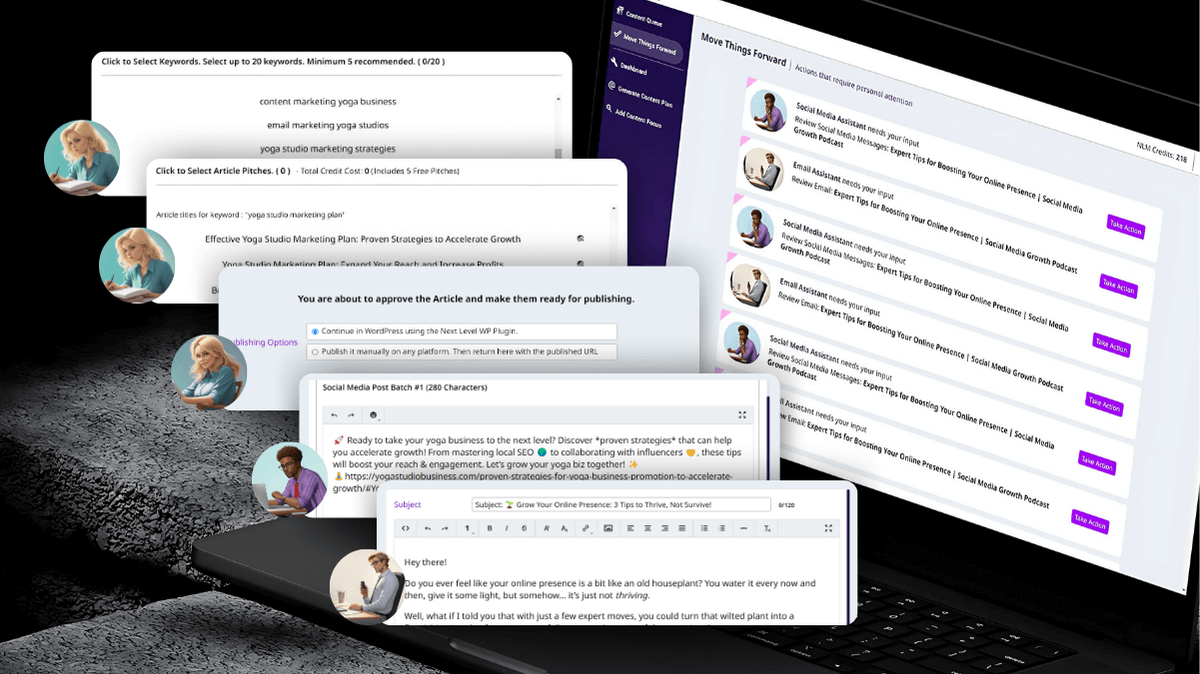 AISQ’s Next Level Marketing AI offers a comprehensive solution for automating content creation, keyword research, and promotion. As a business owner, you’ll only need to make approvals.