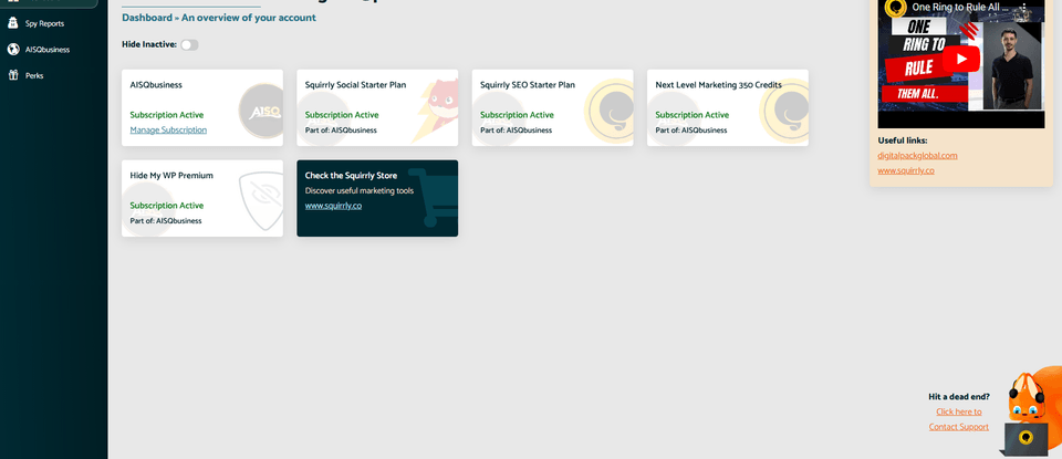 In Customer App, you can now have a clearer view of the marketing tools created by AISQ Squirrly that have been included. If you go to the left menu, you will find even more details there, including the link to the official Discord channel.