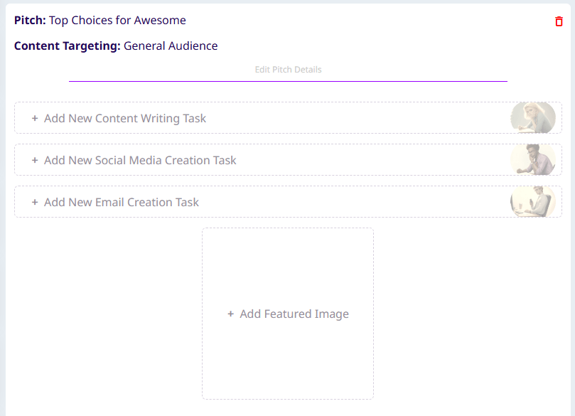 That’s what it looks like now when a pitch is inside the Content Queue but doesn’t have any AI agent to do any work on that content.