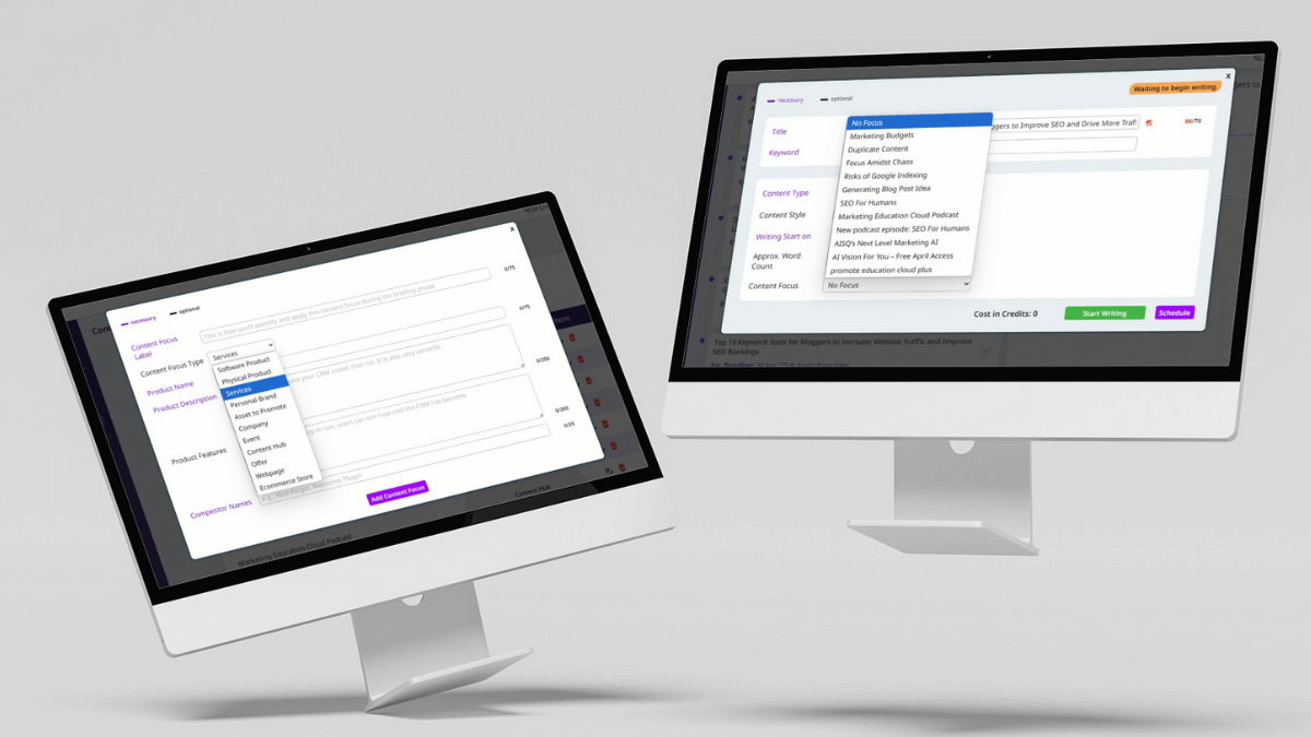 Next Level Marketing AI lets you create Content Focuses—built-in info packs that guide the AI to include what matters most for your business right now.