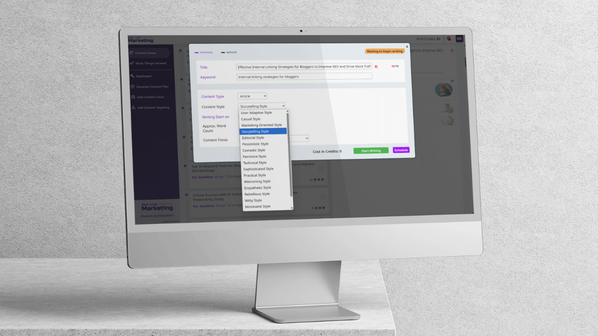 The AI agent for writing content inside Next Level Marketing AI adapts to your voice, no matter how many articles you create.