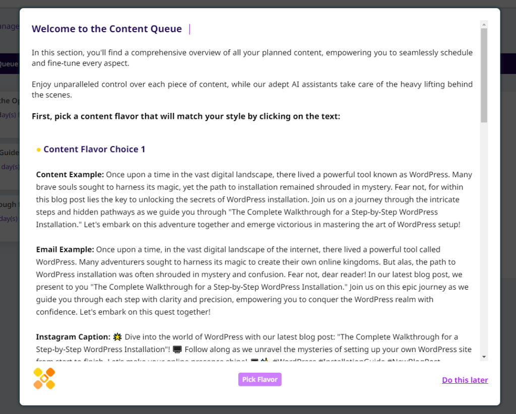 Once you choose your favorite sample – Content Flavor Choice 2, for example, we will save those preferences as well.