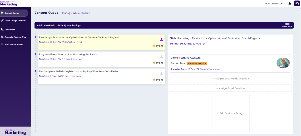 Now, for those of you who love SEO, the magic of SEO here is that Next Level Marketing has actually assigned tasks to the: