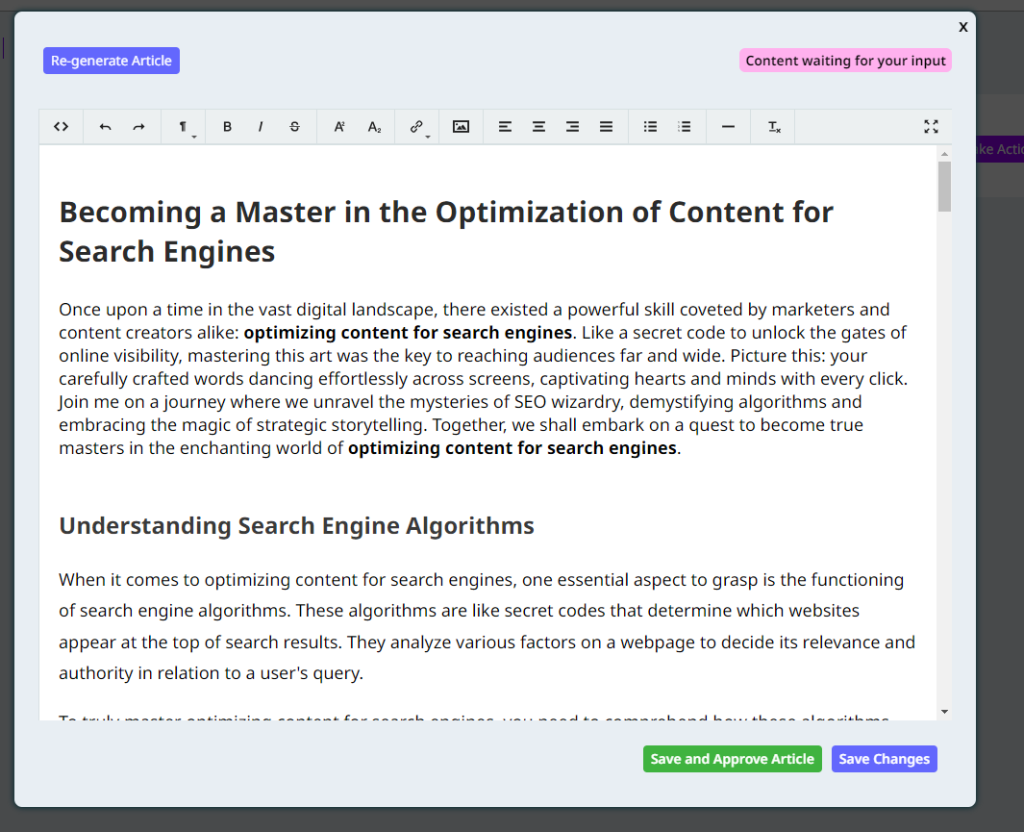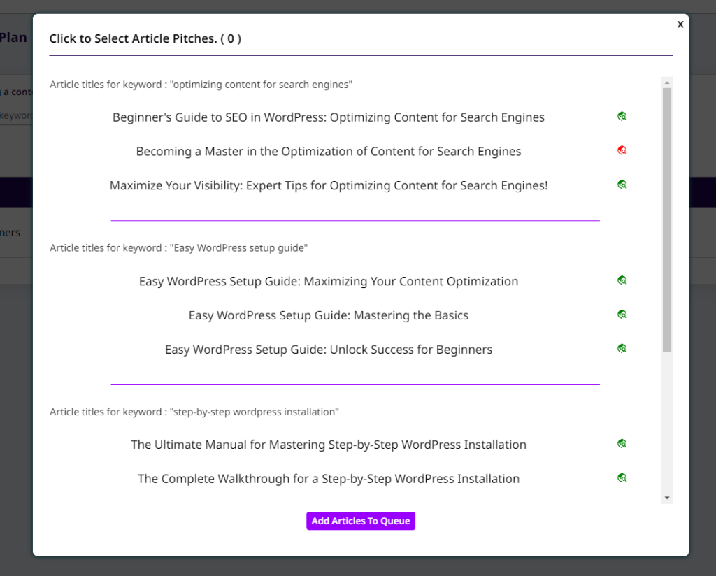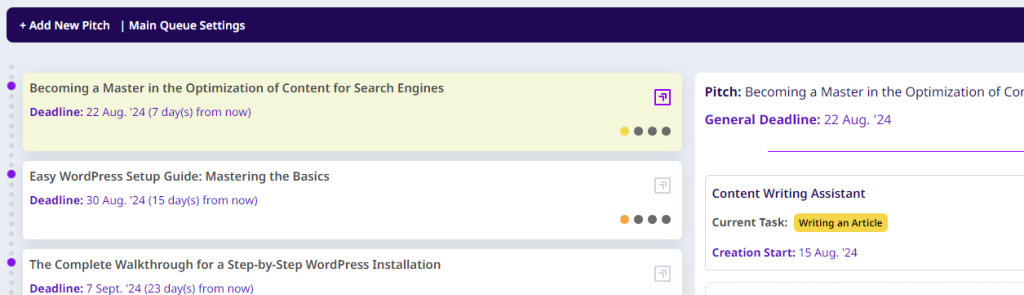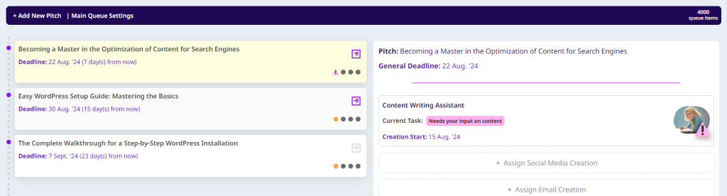 From an initial topic – you got perfect keywords – pitches – style and flavor to make sure the content will be spot on – a plan – a content AI to make that plan happen.