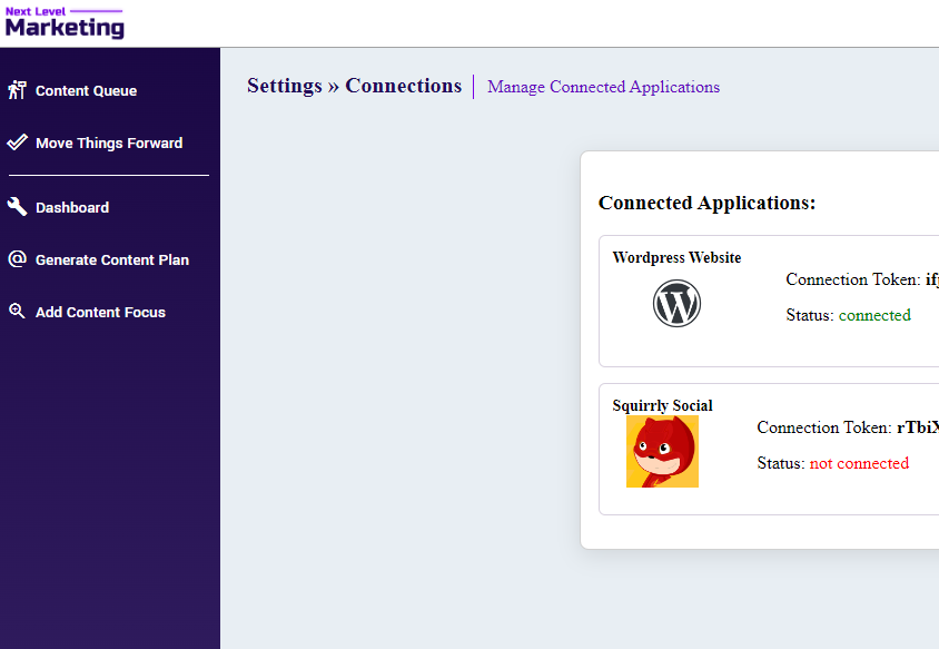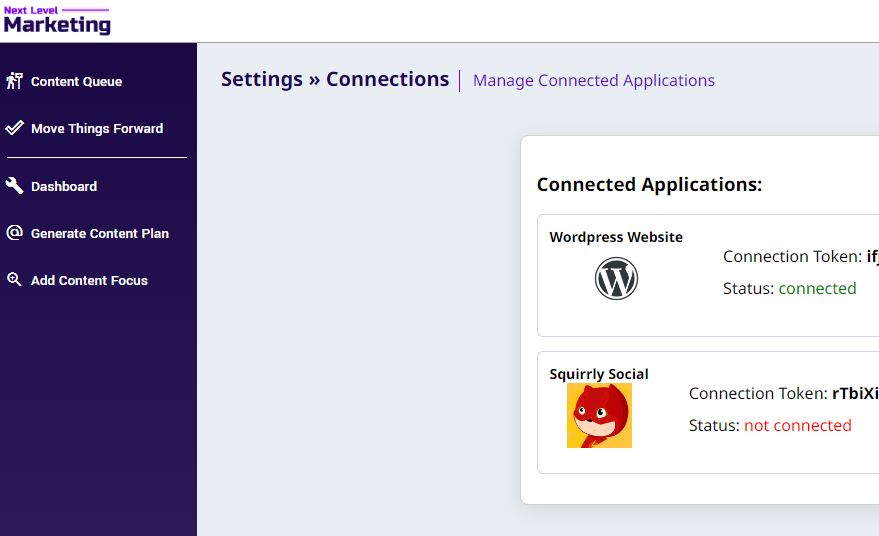 Now you will need to place the token to connect your WordPress Plugin for Next Level Marketing by AISQ to the Web App of Next Level Marketing.