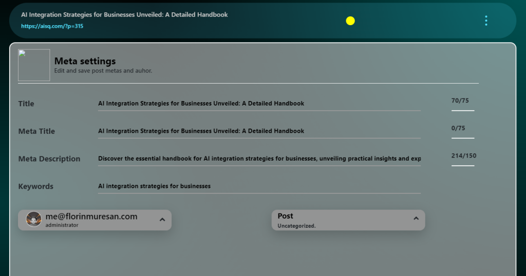 You can switch the author. For example, the default WP is with that account, but we don’t want that. Everything needs to be published under AISQ name. With that author drop-down element, you can easily switch from here.