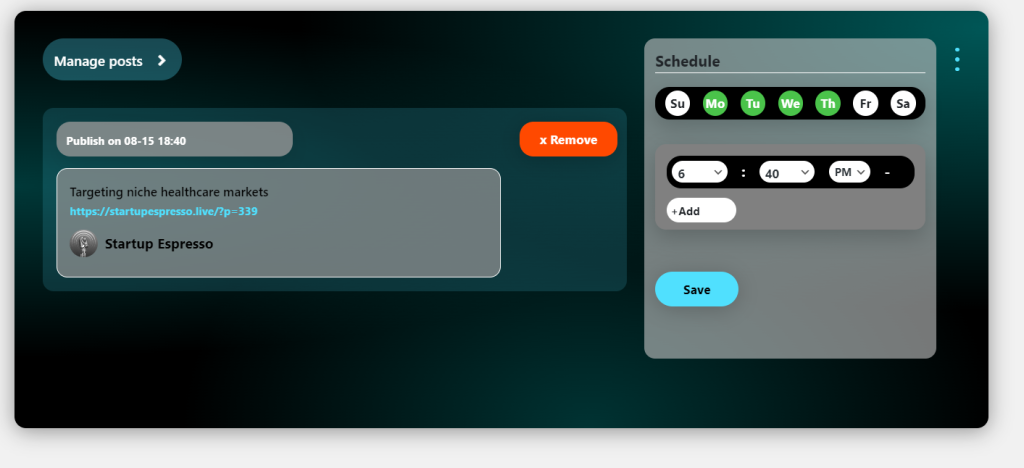 It’s now a very streamlined experience for scheduling and publishing, just like we have in Squirrly SOCIAL.
