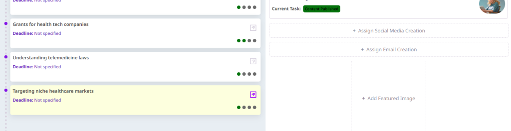 This easily shows users that the Writing Specialist finished the task and that the Social Media Specialist is currently working its task.