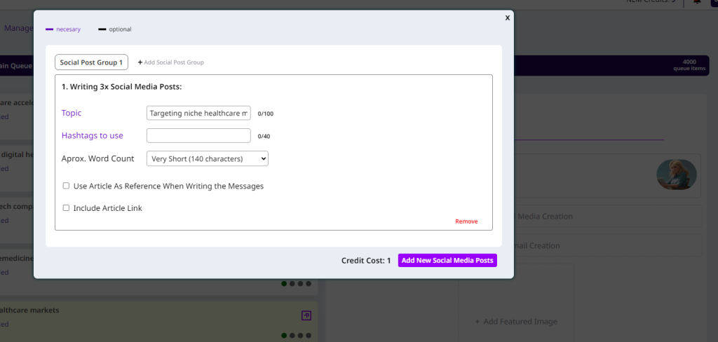 The Social Writing Assistant has now begun working on the new social media messages for this new content.